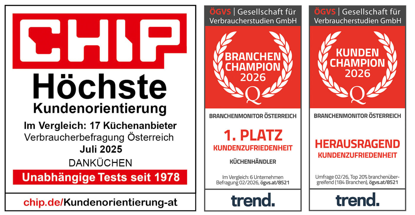 Wir freuen uns, dass unser Engagement für exzellenten Service und individuelle Beratung mit dem Siegel „Höchste Kundenorientierung“ ausgezeichnet wurde. Dieses unabhängige Gütesiegel bestätigt, was unsere Kundinnen und Kunden täglich erleben: Bei uns stehen ihre Wünsche, Bedürfnisse und Zufriedenheit an erster Stelle – von der ersten Idee bis zur fertigen Küche. Vielen Dank für dein Vertrauen!